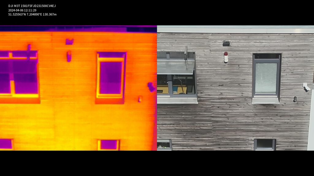 Testaufnahmen mit Infrarot- und optischer Kamera, für Tierrettung und thermale Bauzustandsüberprüfung